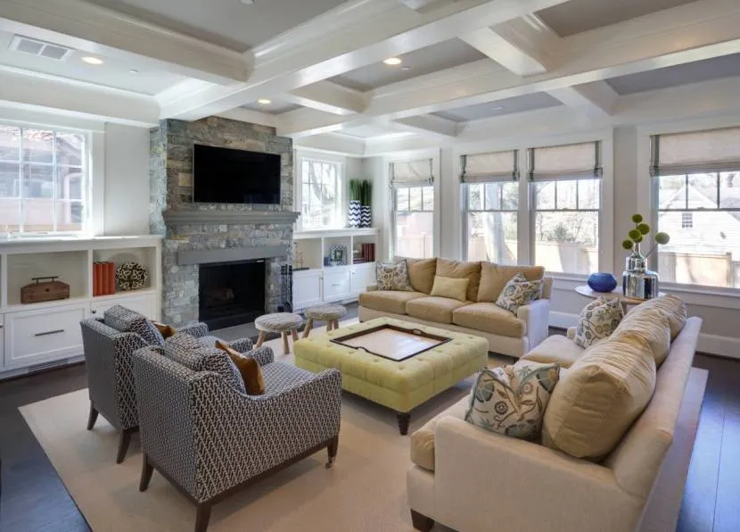 Если это гарнитур, состоящий из нескольких предметов интерьера, то его элементы своей формой повторяют друг друга и красиво сочетаются. Большую популярность получили угловые диваны с оттоманкой в интерьере. Такая мебель позволяет уютно расположиться всей семье около телевизора или камина. При этом на оттоманке можно установить поднос с чаем или поиграть на ней в настольную игру, а то и просто вытянуть на нее ноги.