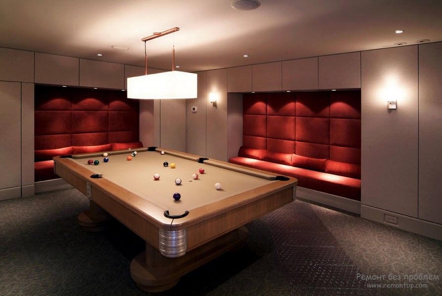 - Звукоизоляция. Игровую стараются разместить подальше от спальных и детских, так как звуки от ударов и столкновения шаров будут мешать отдыху домочадцев. В противном случае придется подумать об усилении звукоизоляции.