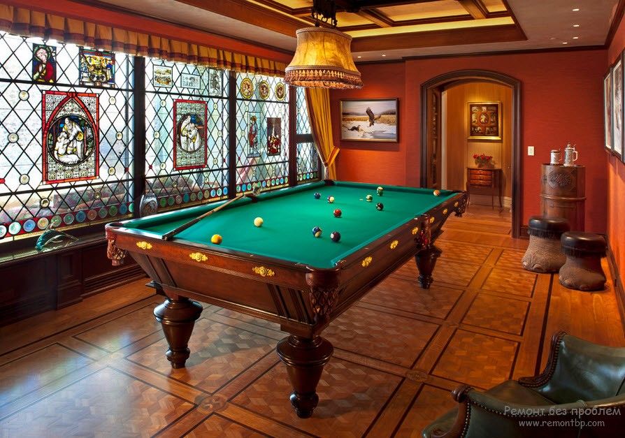 При украшении бильярдной комнаты придерживайтесь следующих советов: