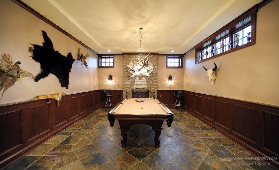 В связи со спецификой бильярдной комнаты выбору материалов для ее отделки уделяется особое внимание