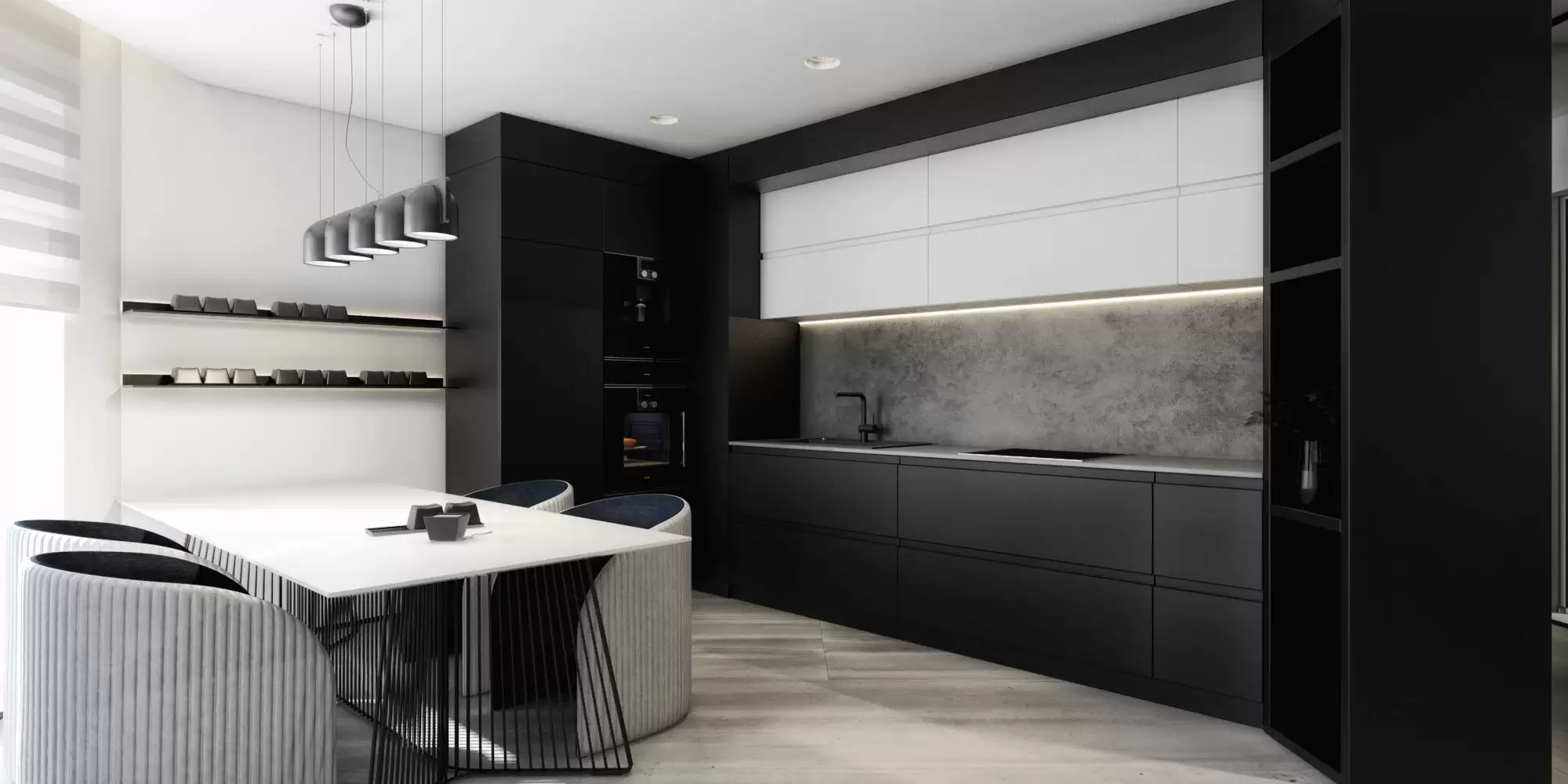 Какой цвет-компаньон можно добавить в черно-белую кухню?