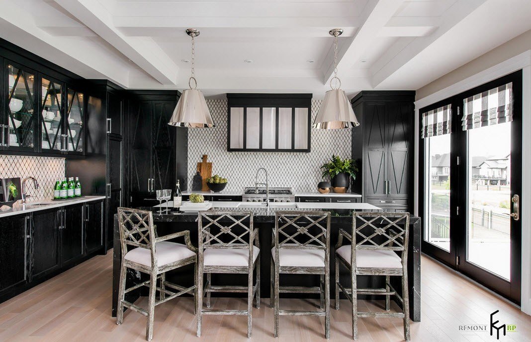Палитра в черно-белом цвете достаточна универсальна, она подойдет как для кухонь маленького размера, так же и для больших интерьеров
