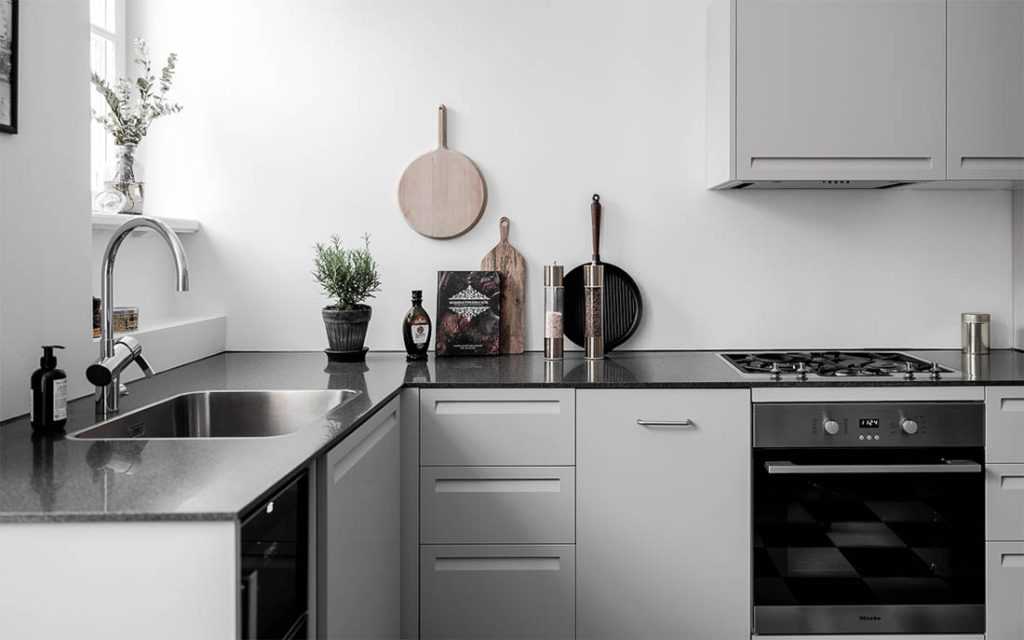 Обращайте внимание на мелочи: несколько черно-серых плиток на фартуке станут красивым акцентом