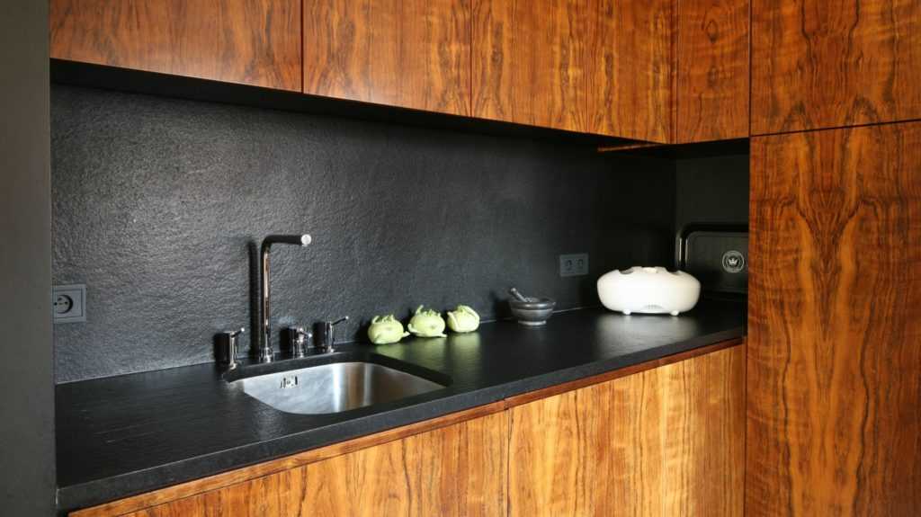 Черные столешницы на кухне: ламинат, камень и агломерат