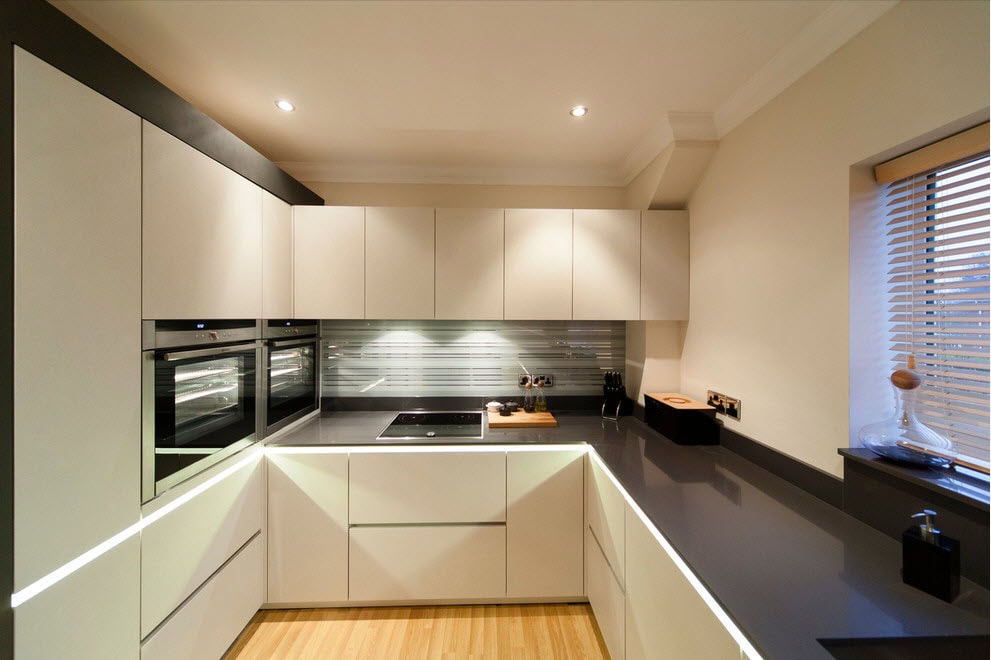 : Не забывайте, что тут ключевую освещение. Помимо основной лампы попробуйте установить подсветку над рабочей поверхностью – это обеспечит комфортную готовку