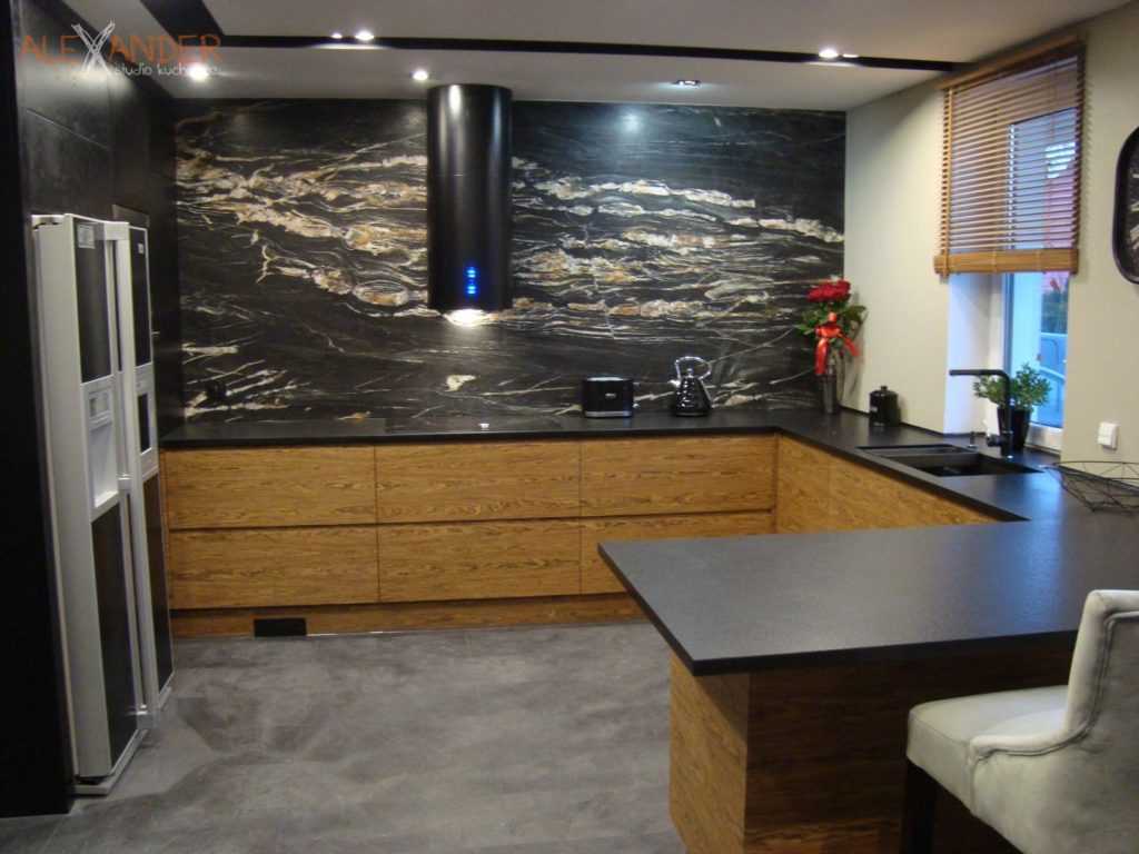 2. ГРАНИТ — считается одним из самых долговечных природных материалов. Почти неразрушимый, он прекрасно подходит как материал для кухонной столешницы. Он устойчив к механическим повреждениям, сильным химическим веществам, а также высоким температурам. Черная кухонная столешница из этого камня прекрасно сочетается с гламурным, современным и минималистским интерьером. Его самые большие недостатки включают высокую цену и большой вес.