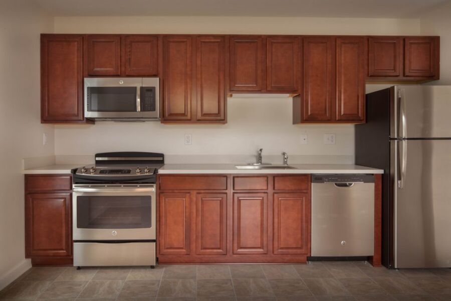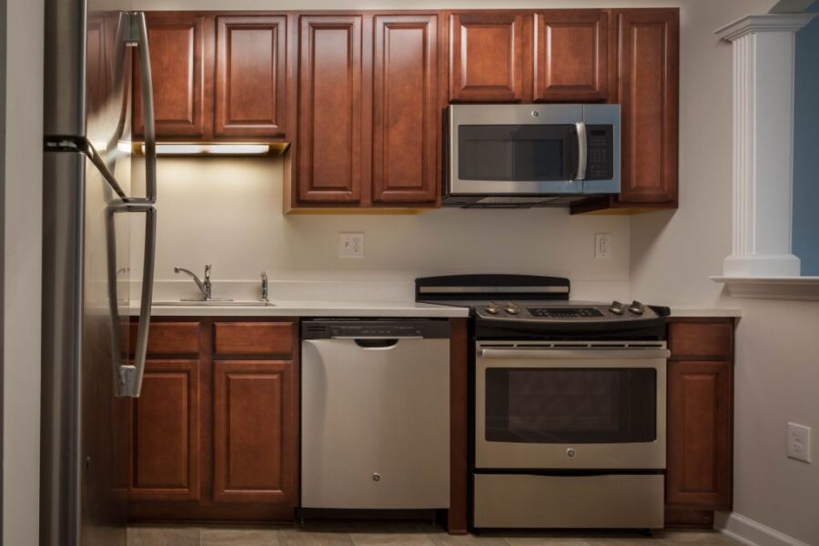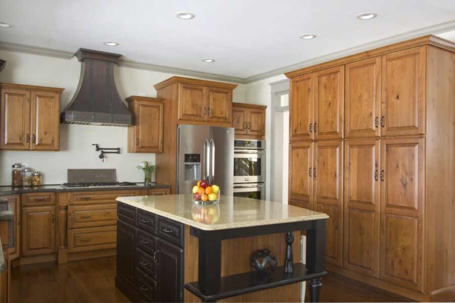 Однородность на шоколадно-коричневых кухонных шкафах позволяет легко смешивать и подбирать цвета для других элементов кухни. Кухонные шкафы из коричневого дуба распространены в большинстве домов — они красивы и функциональны.