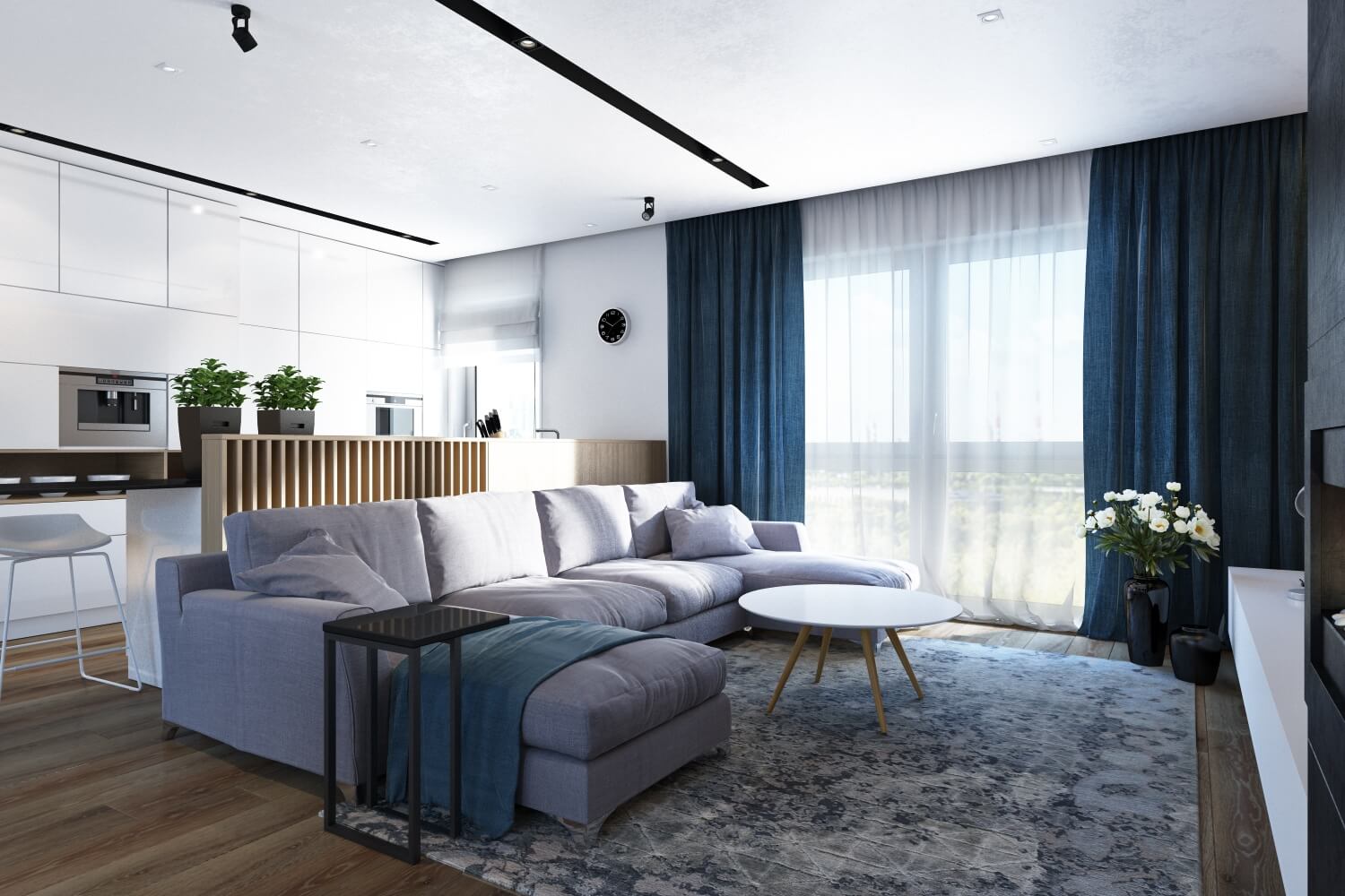 Такой вариант разделения подразумевает сразу несколько вариантов. Можно соорудить барную стойку. Многие кухонные гарнитуры включают отдельностоящий остров, который также может размежевать площадь. В качестве еще одного варианта дизайнеры предлагают возвести декоративную перегородку из гипсокартона с нишами или полками для размещения предметов декора, книг и других мелочей. Не стоит забывать и про диван в гостиной, который также может отделять ее от кухни.