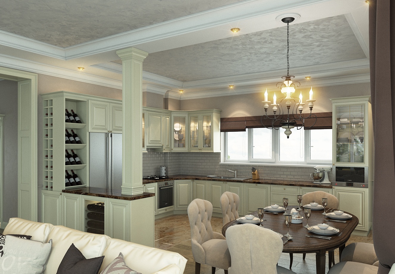 Стили дизайна кухни-гостиной разнообразны, от Прованса до футуризма, на практике предпочтения отдается классике или функциональному техно.