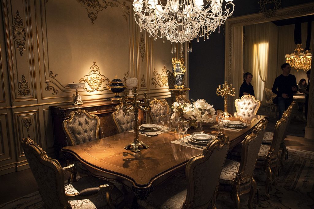 А вот ковровые покрытия это больше относится к корням из Индии, в целом, как и канделябры над столом
