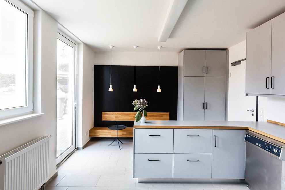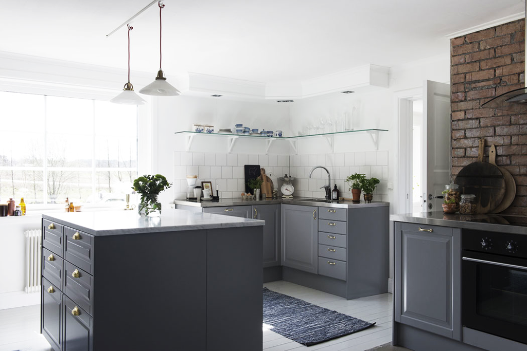 Представлен упомянутый цвет в модульных системах «Кноксхульт» – готовых кухнях со столешницей, ящиками, мойкой и смесителем. Поставляется гарнитур в разобранном виде, но в комплекте есть все необходимое для сборки. Существуют разные комплектации, соответственно, с различной вместительностью и количеством навесных и напольных шкафчиков. Также стоит присмотреться к линейкам «Sektion» и «Bodbyn».