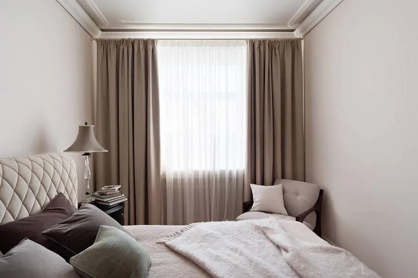 Следует особое внимание уделить шторам: они должны быть плотными, из тяжелой ткани, которая не пропускает свет, поскольку организму важен отдых и нужно полное восстановление, а свет фонарей может негативно сказаться на процессе сна