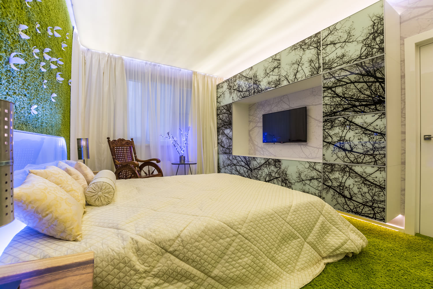 Достаточно мягкая палитра цвета трав позволит Вашим глазам насладиться отдыхом и релаксировать.