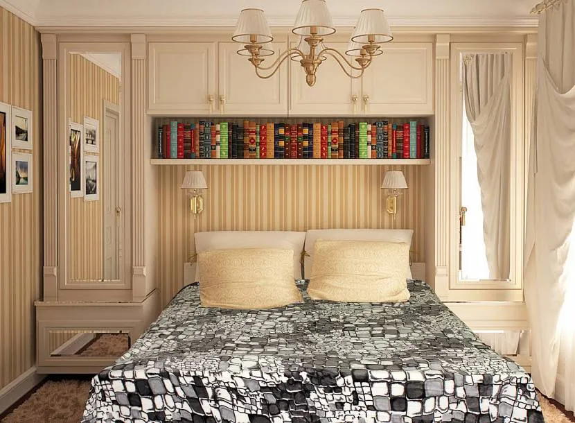 Дизайн спальни с полкой для книгИсточник yandex.kz