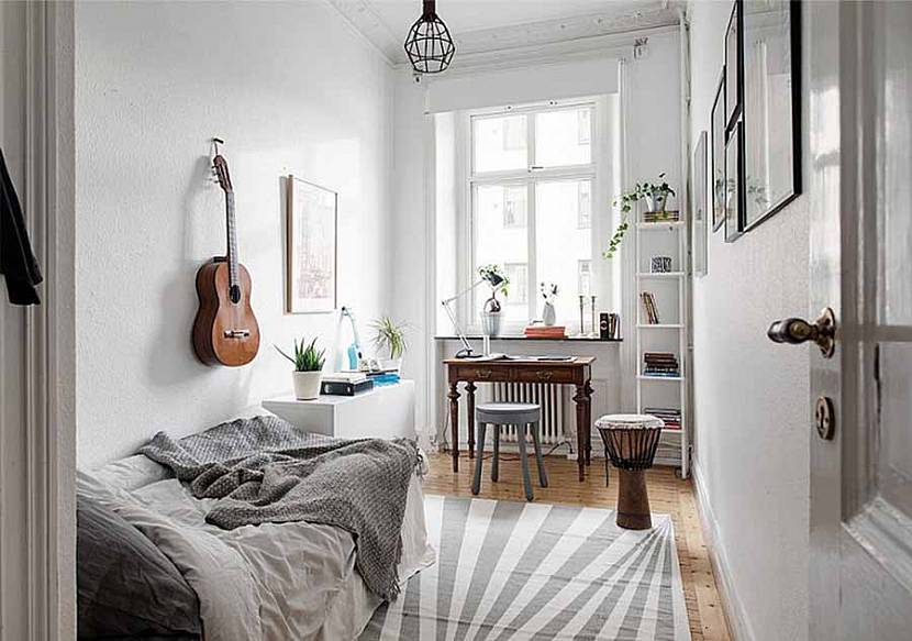 Так, в маленькой спальной комнате не стоит использовать большое количество декоративных элементов. А для бесполезных, но милых сердцу вещиц стоит выделить длинную горизонтальную полку. Рациональный вариант – предпочесть один декоративный предмет, например, картину, панно или постер.