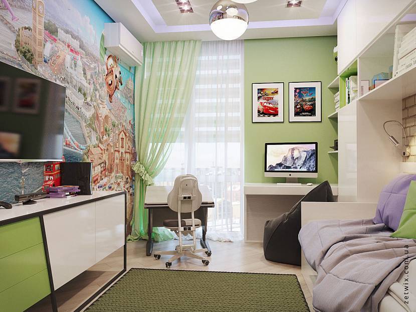 Стиль конструктивизм с нотками излюбленной тематики в детской мальчикаИсточник dizainmetrov.ru