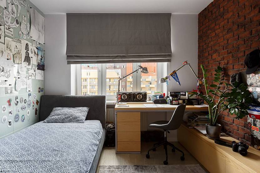 Во время подросткового возраста места для игрушек и игр становится меньше. В этот период стоит позаботиться об книжных полках. Рабочий уголок должен быть спроектирован должным образом, обеспечен качественным освещением. Желательно использовать основное и дополнительное освещение. Помимо своего благоприятного воздействия на зрение ребенка, комната визуально станет больше, просторнее по своему размеру.