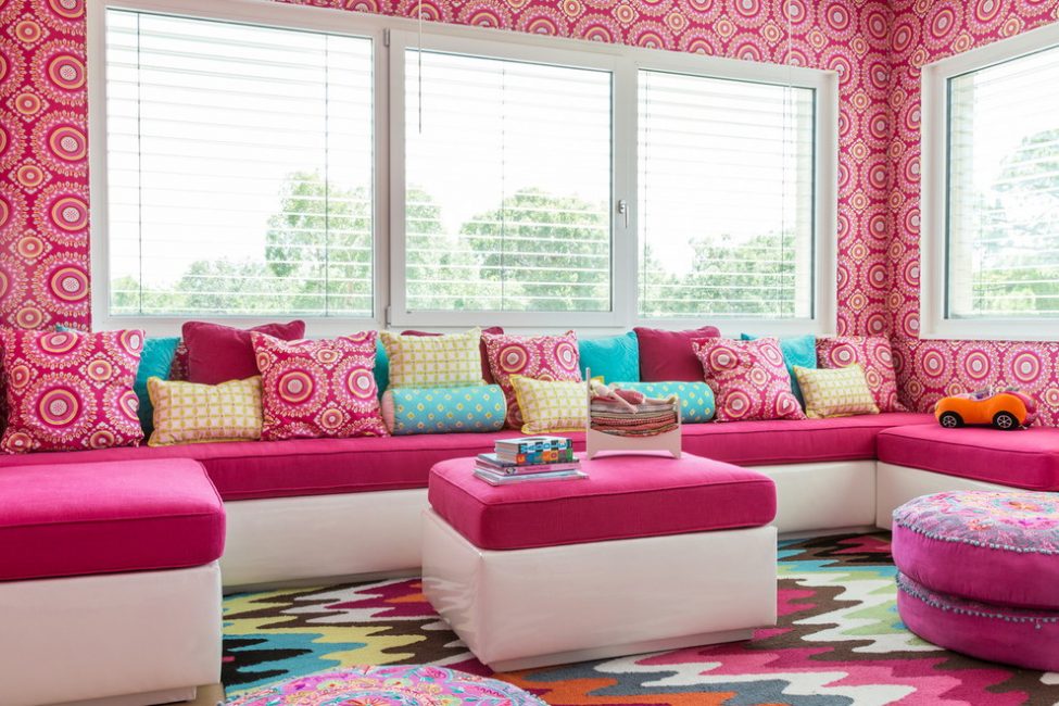 Не используйте резкие контрастные оттенки, крупные принты и темную гамму. Данные приемы сделают комнату меньше, поэтому внимательно отнеситесь к оформлению.