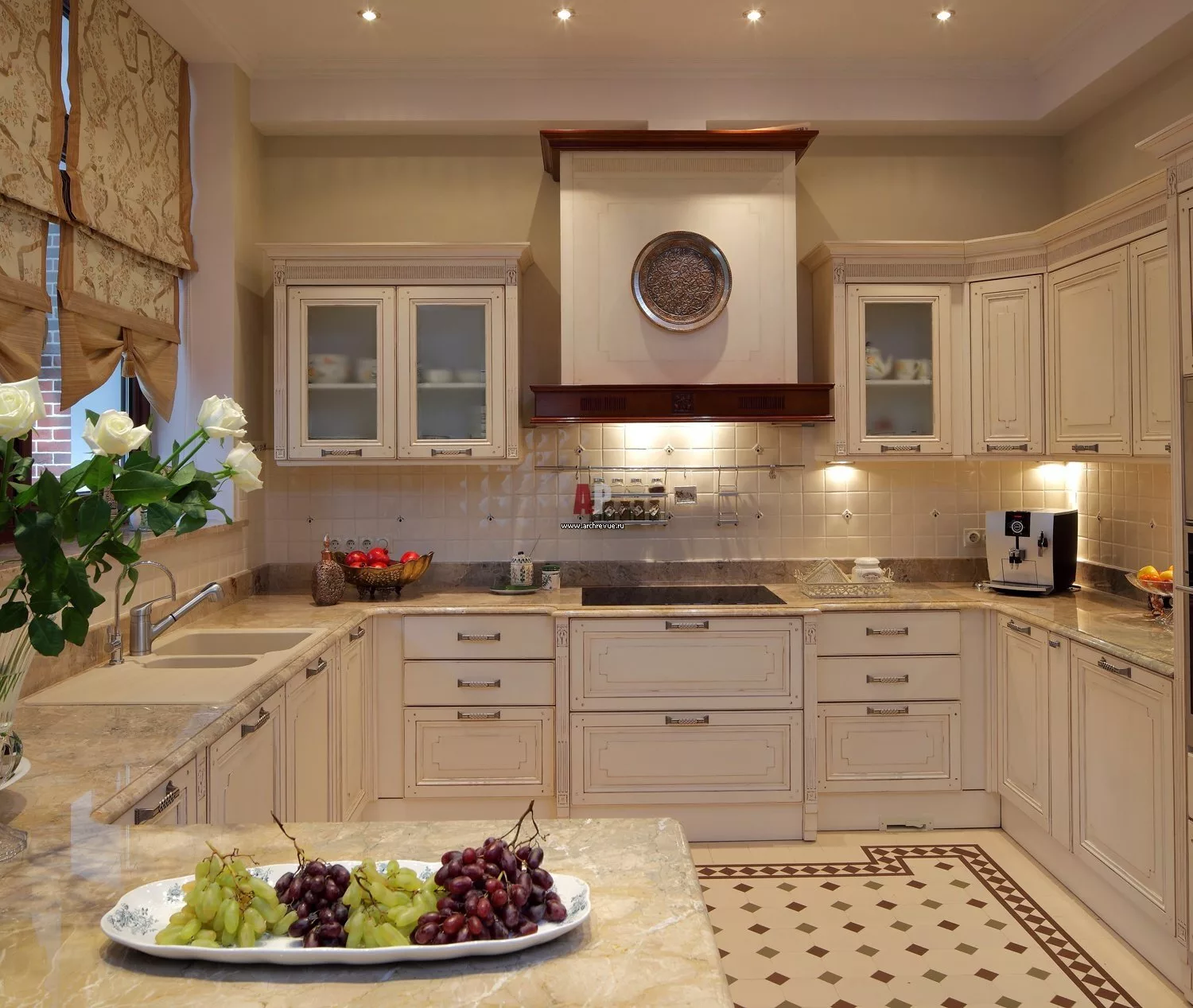 Для оформления кухни 10 кв.м подойдут практически все существующие стили и направления. Настоящая классика с декоративными пилястрами, балюстрадами, карнизами, витражами в витринах, но желательно без тяжелых арок и массивных накладок. Они создадут эффект уменьшения размеров помещения.