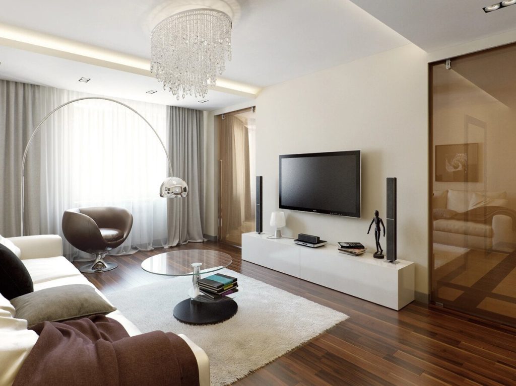 Хозяева малогабаритного жилья обычно выбирают варианты бюджетного зала, когда интерьер достаточно прост и по своей идее, и по реализации. Но это не значит, что нужно отказываться от комфорта и функциональности. Конечно, название стиля при этом уже не имеет столь большого значения, ведь на площади 14 метров дизайн просто не может быть вычурным, чересчур ажурным или торжественным. Здесь уместны преимущественно минималистичные технологичные обстановки, желательно с возможностью трансформации, но это уже более дорогостоящие решения, которые доступны не всем.