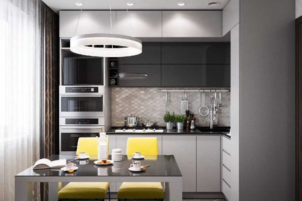 Есть еще один момент: запрещено смешивать кухню и гостиную, если в кухонном помещении поставлена газовая плита. Это очень опасно. Когда дело дойдет до продумывания дизайна, требуется учесть особенности бытовой техники. Чтобы она не нарушала эстетическую концепцию, полный комплект должен быть выбран заранее