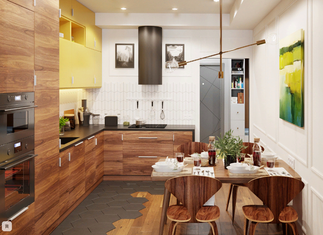 Но для скромного метража нужно подходить к выбору тона более осторожно. Откажитесь от темных вариаций, поскольку они визуально уменьшают помещение и делают его тяжелым для восприятия. Мягкий лимонный или цитриновый – отличный вариант для маленькой кухни