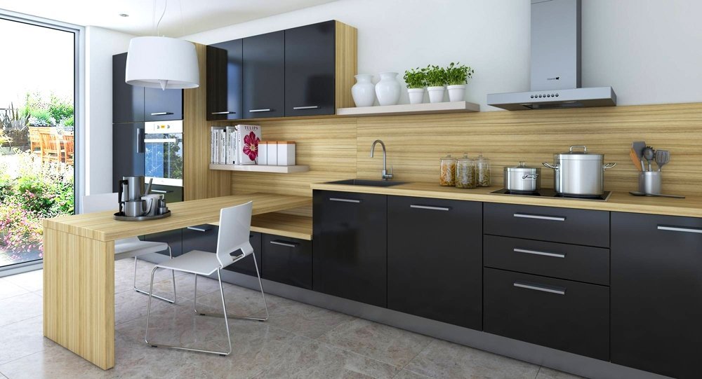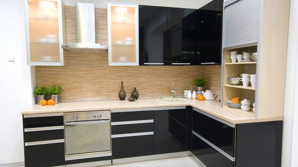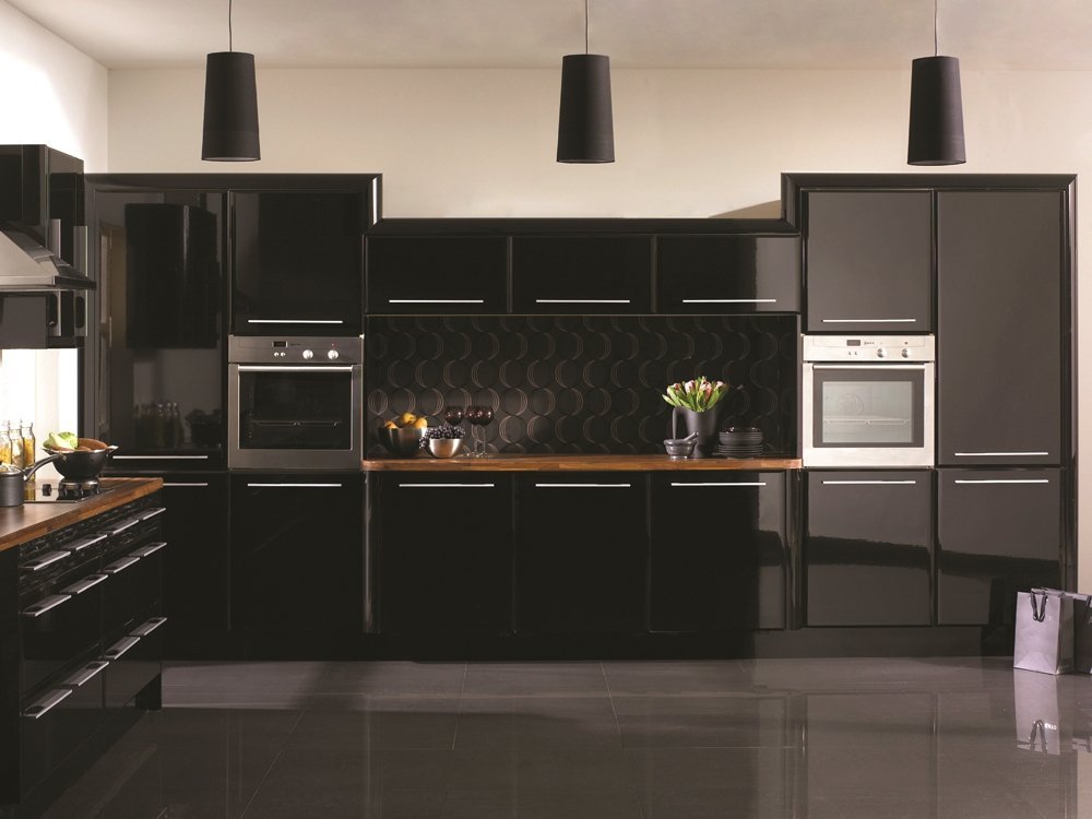 Кухня в черном – воплощение индивидуализма и экстравагантности. Если правильно расставить акценты, она вовсе не будет казаться мрачной. Главное – не переусердствовать: в небольших кухоньках черными лучше сделать только фасады, остальные поверхности оформить в пастельных тонах. При оформлении больших помещений можно действовать смелее, но потолок и часть пола рекомендуется оформить в контрастных красках, чтобы сохранить баланс.