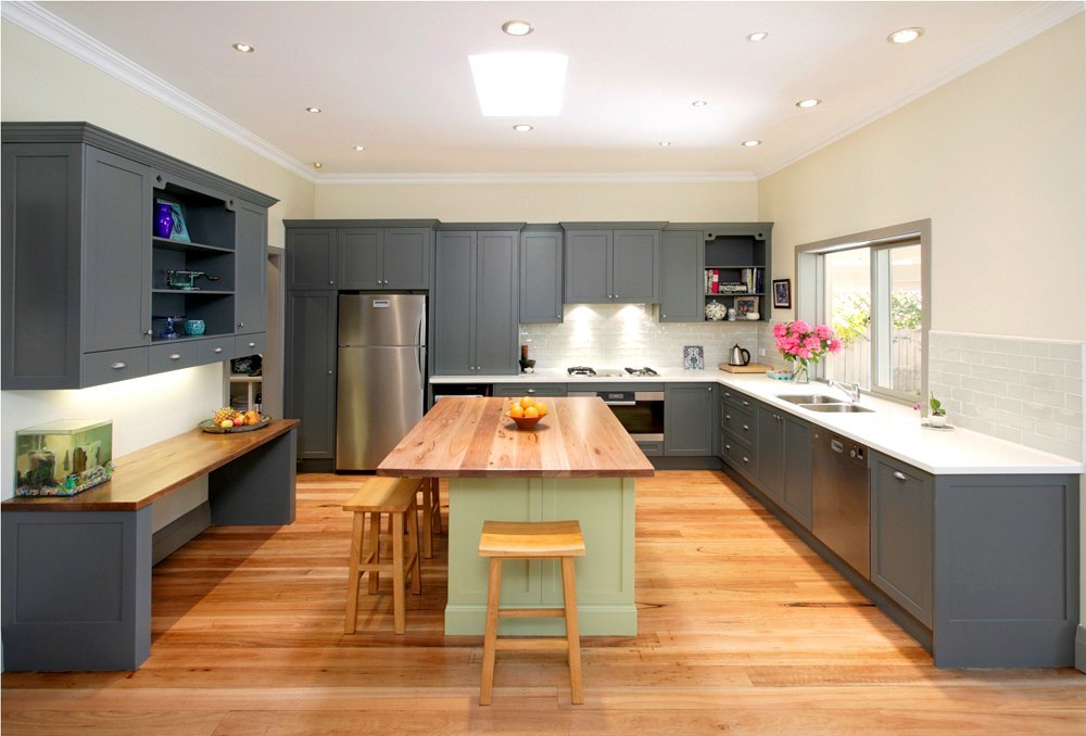 Существует множество разновидностей серого. Светло-серый, серебристый, песчаный можно использоваться в небольших помещениях, а то время как чернильный и графитовый прекрасно впишутся в просторную кухню.