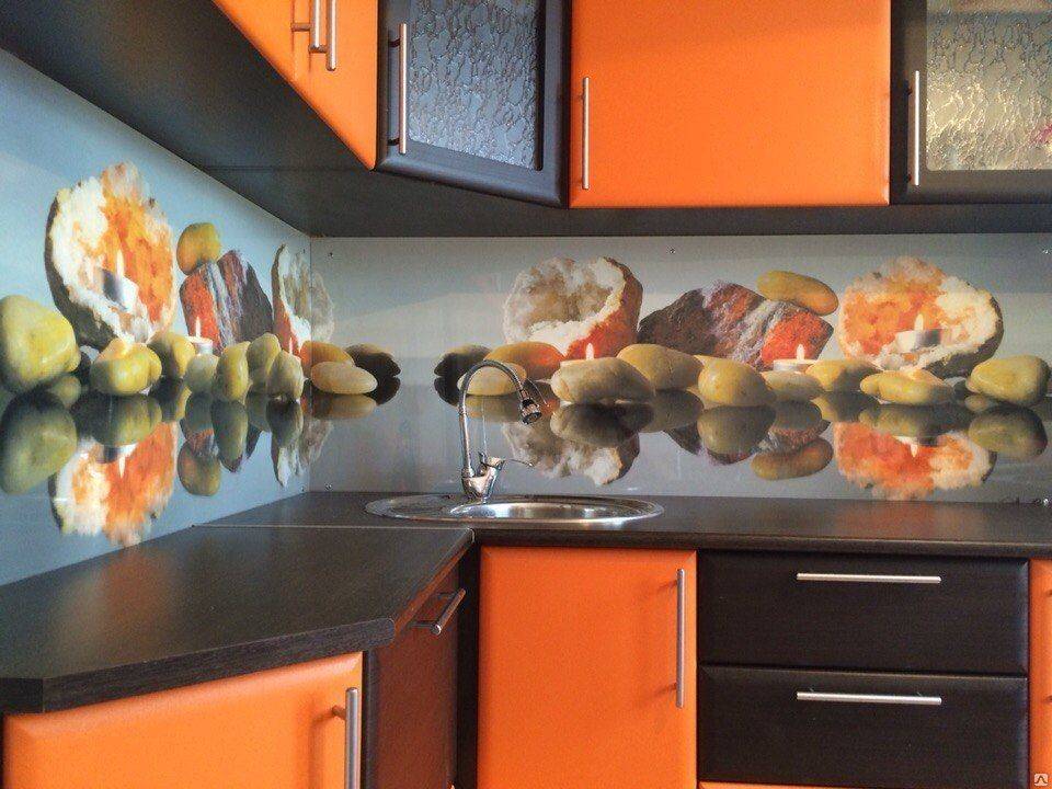 Высота верхних шкафчиков учитывается при оформлении потолка. Для фартука используются легко моющиеся покрытия прямоугольной формы.