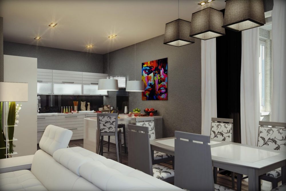 Дизайн кухни-гостиной с барной стойкой