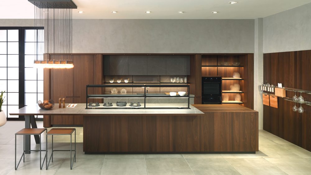 Замечательно гармонирует в интерьере барная стойка, соединенная с зоной готовки. Это идея из азиатской кухни, где шеф-повар готовит перед клиентами. Если планируете создать собственное шоу или удивить своими навыками гостей, тогда это точно ваш вариант!