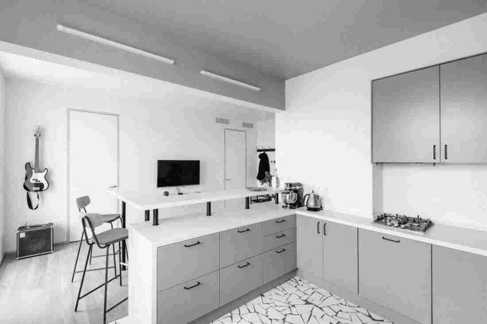 Маленькая кухня-гостиная с барной стойкой