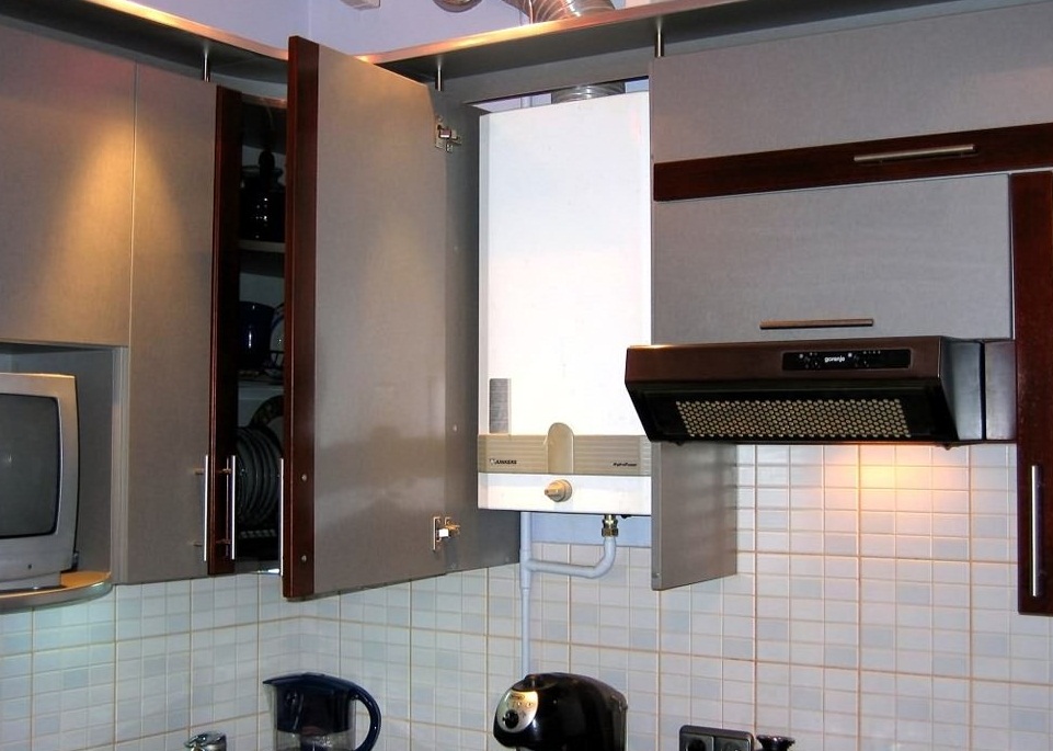 Котел внутри кухонного шкафчика