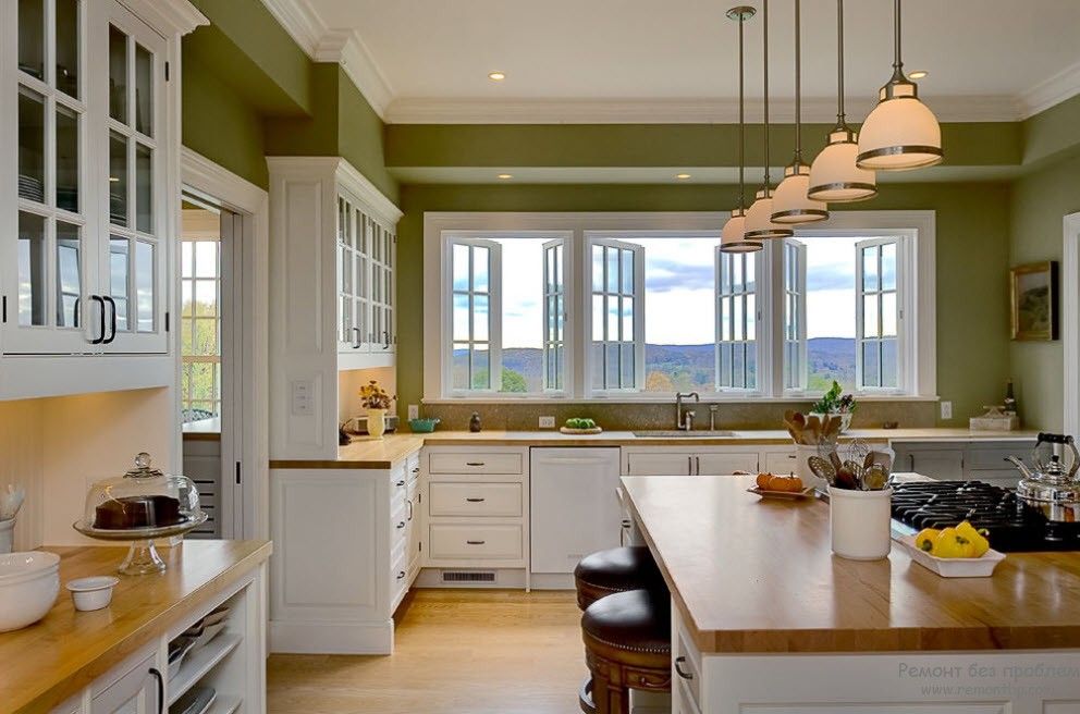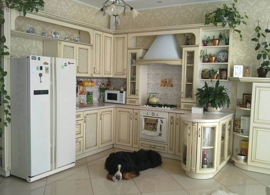 На данный стиль стоит обратить внимание, если кухня больших размеров. Кантри-стиль характерен использованием натуральных материалов, наличием национальных, естественных элементов, лоскутных тканей, т.е