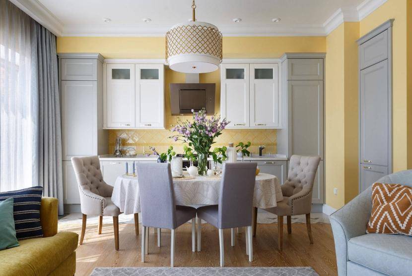 Интерьер объединенных помещений должен сочетаться и соответствовать общему стилю квартиры. Выбрать можно любой понравившийся – в кухню-гостиную впишется и классика, и прованс, и хай-тек.
