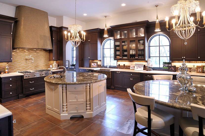 Это своеобразный и уникальный стиль идеален для совмещенной кухни-гостиной загородного особняка.