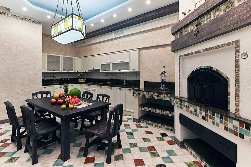 При предпочтении подвесных потолков очень важно подобрать их по цветовой гамме ко всему остальному. А выбрав кованые или плетеные плафоны для светильников, легко вписаться в стиль. Ковка и плетенка придадут старинный шарм помещению