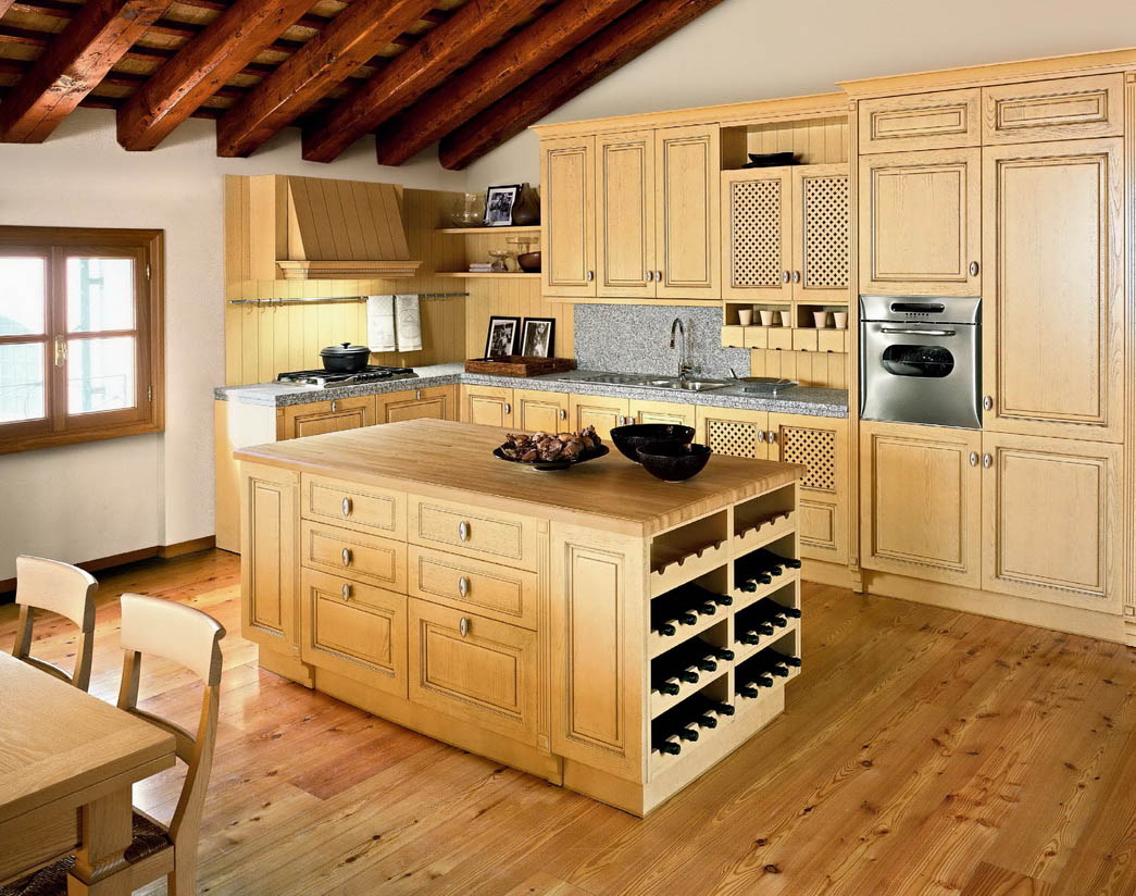 Мебель для кухни в стиле кантри должна быть изготовлена из натурального дерева