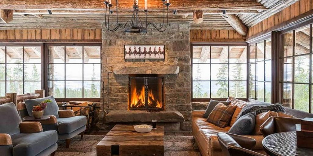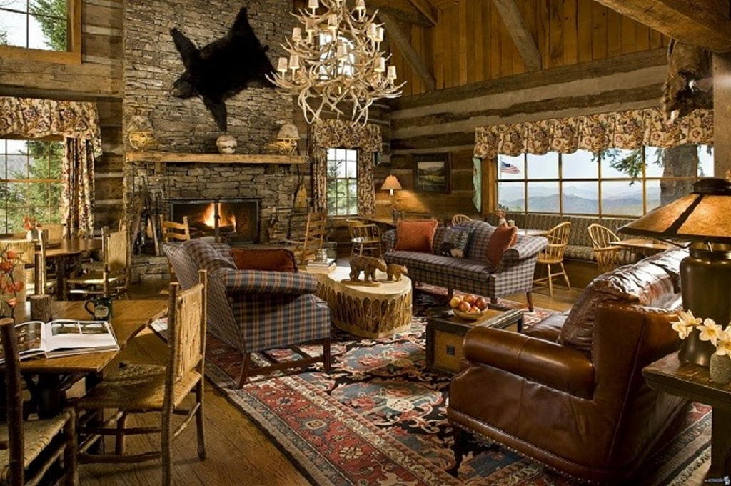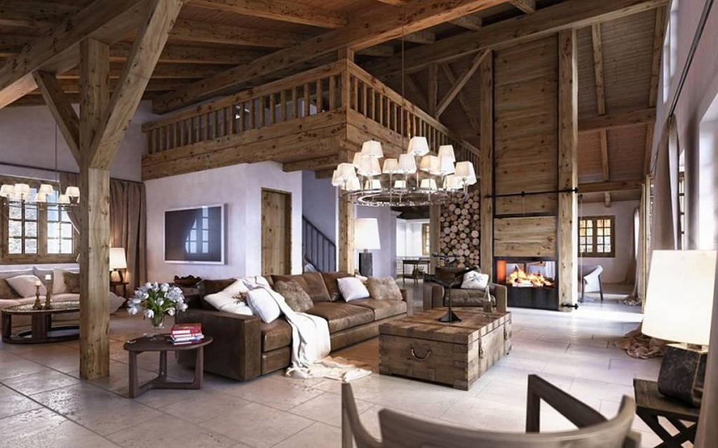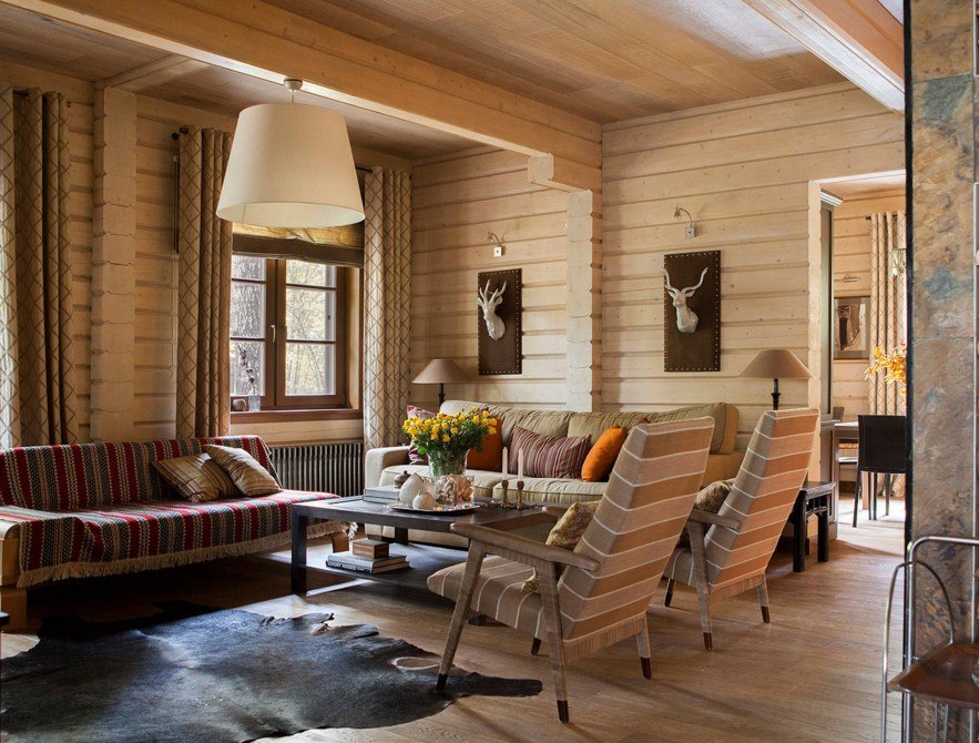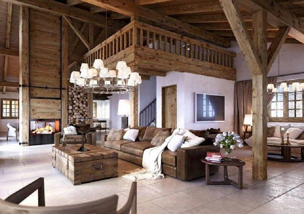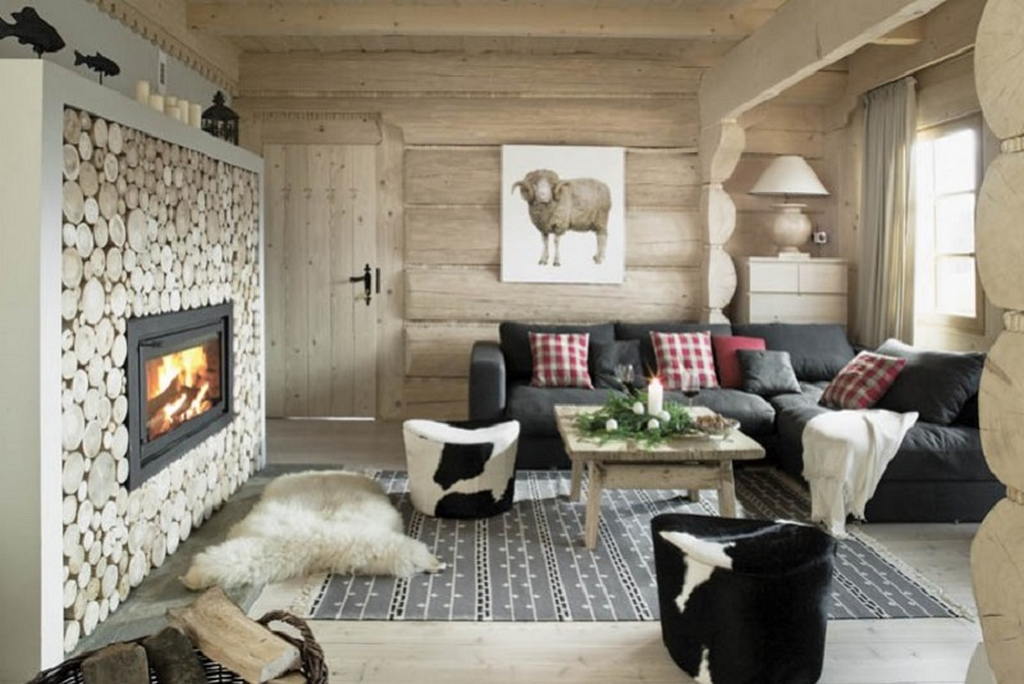Уютная комбинация стилей шале и кантри в оформлении гостинойИсточник paydaydcr.com