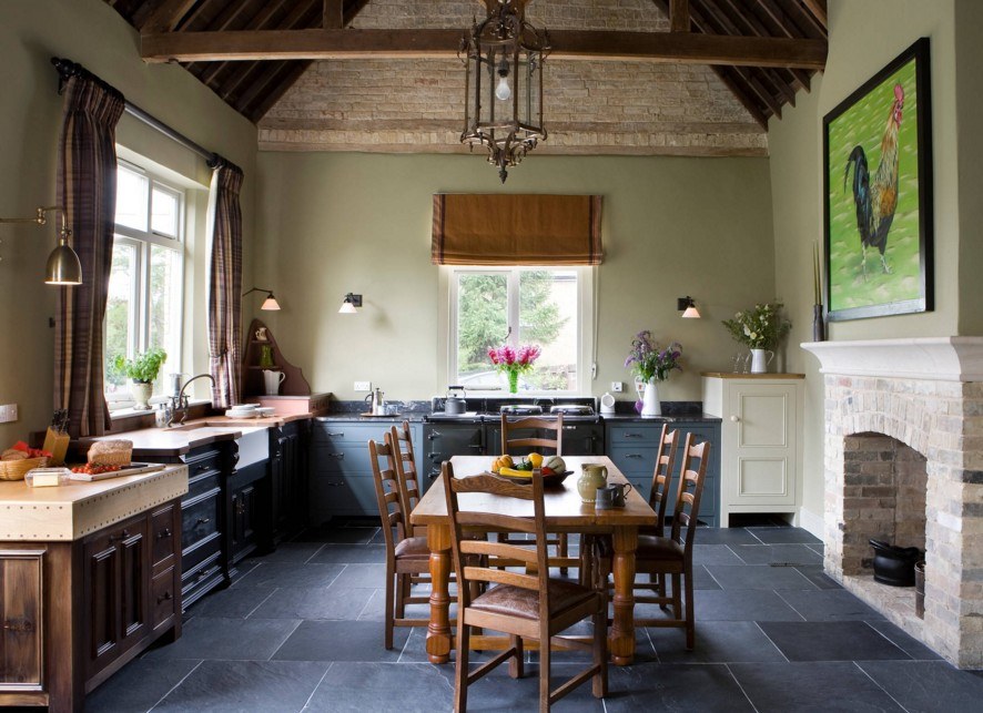 Тяжелые деревянные потолочные балки заменяются на более изящные и легкие, вместо традиционных каминов устанавливаются современные и электрические, да и женщины могут себе позволить дополнить интерьер симпатичными безделушками.