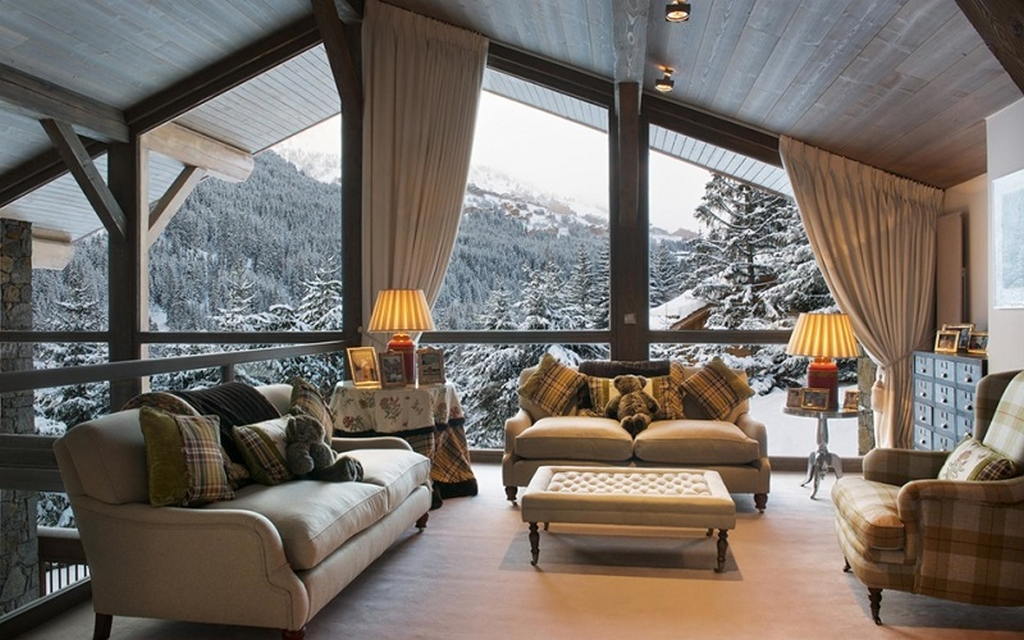 Как вариация в стиле шале, в качестве гостиной может использоваться застекленная веранда или огромный балкон. В этом случае домочадцы и гости могут свободно наслаждаться местными пейзажами потрясающей красоты.