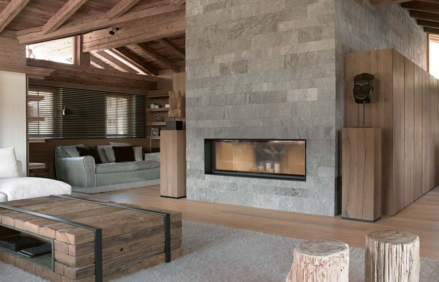 Грубый природный камень в облицовке стен, воссоздаст атмосферу альпийской природы и единения с ней. Также послужит намеком на сельское происхождение этого эко-дизайна.