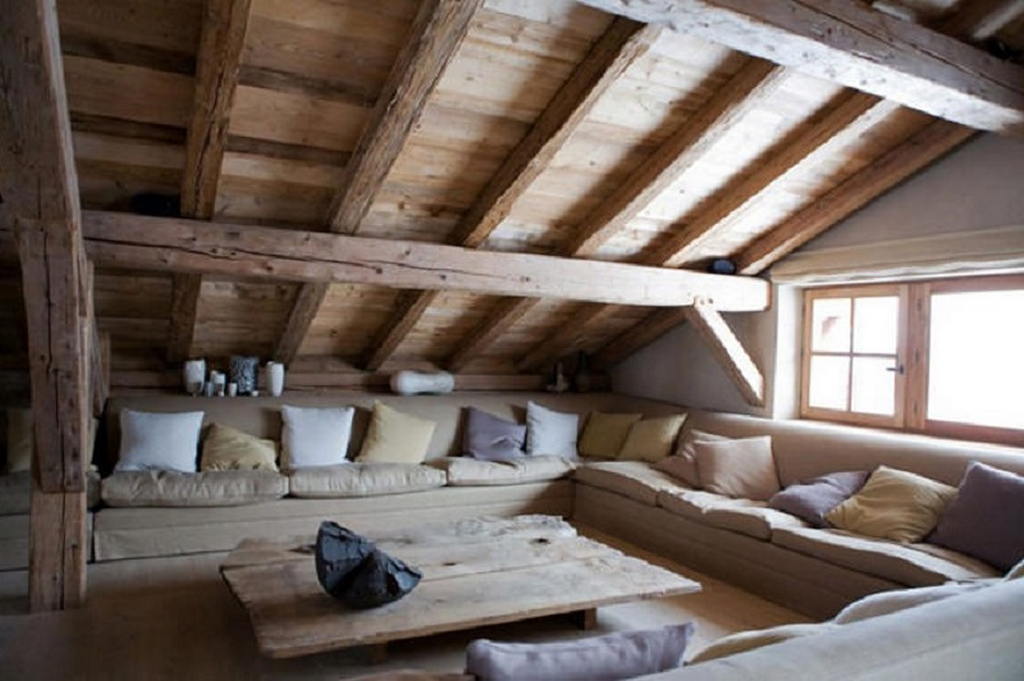 Не забывайте также о том, что швейцарцы усиливали потолки альпийских домиков поперечными балками и целыми бревнами для большей прочности – даже если под отделкой скрываются надежные современные материалы, вы все равно должны соблюсти ключевые черты дизайна.