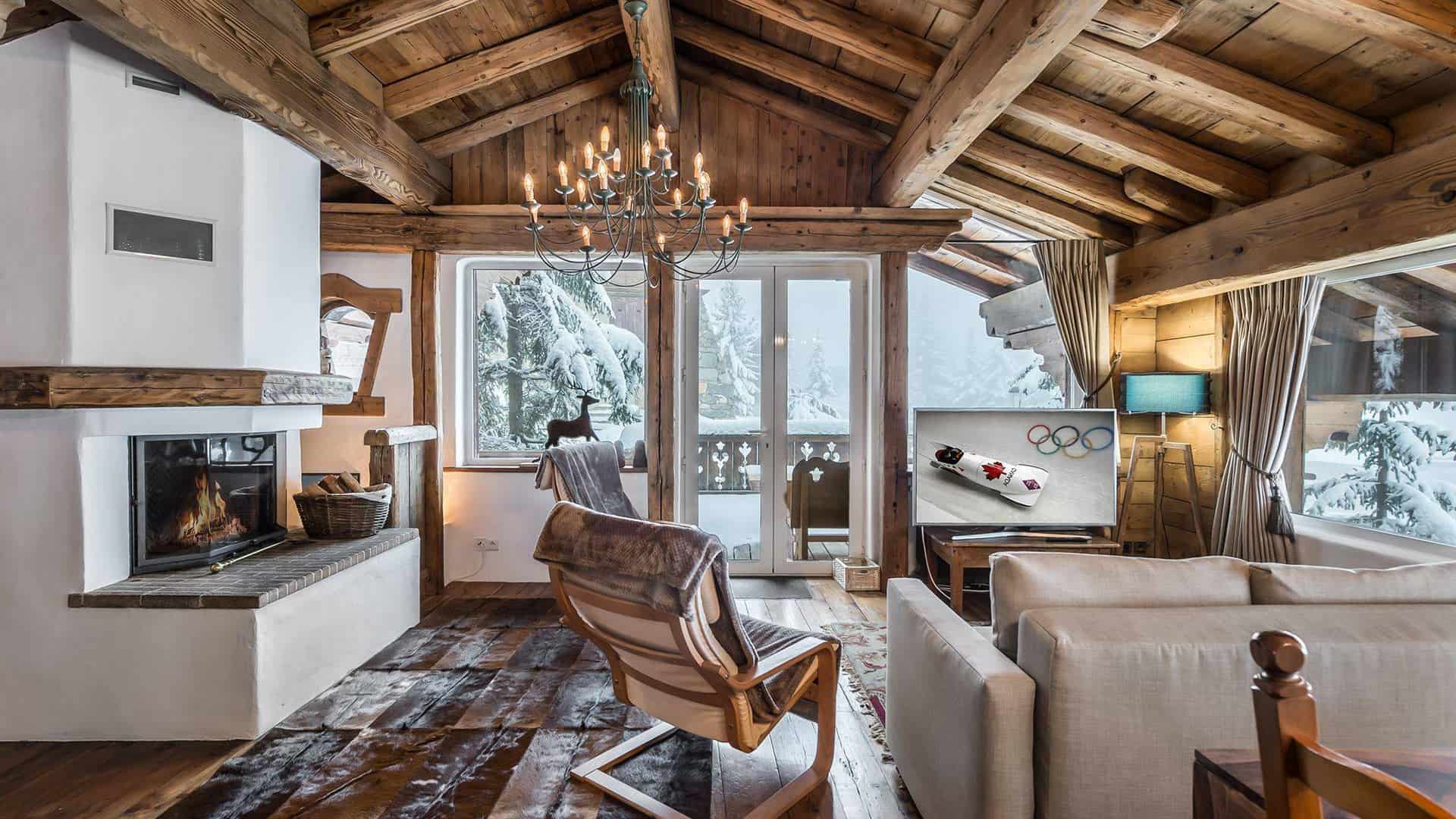 Камин – это сердце любого дома шале. Он играет ключевую роль не только в интерьере гостиной, но и в целом доме. Поэтому его отделка нуждается в особом внимании. Так, фасад камина рекомендуется оформлять натуральным камнем или деревом. Это позволяет сохранить достоверность стиля, даже если вы установили электрический камин, когда у вас квартира в стиле шале. Небольшая связка дров, красиво уложенная в нише стены или сразу возле камина, подчеркнет изысканную домашнюю атмосферу.