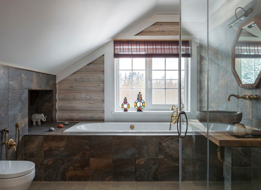 Натуральный цвет дерева и камня — вот, пожалуй, и вся цветовая палитра стен.
