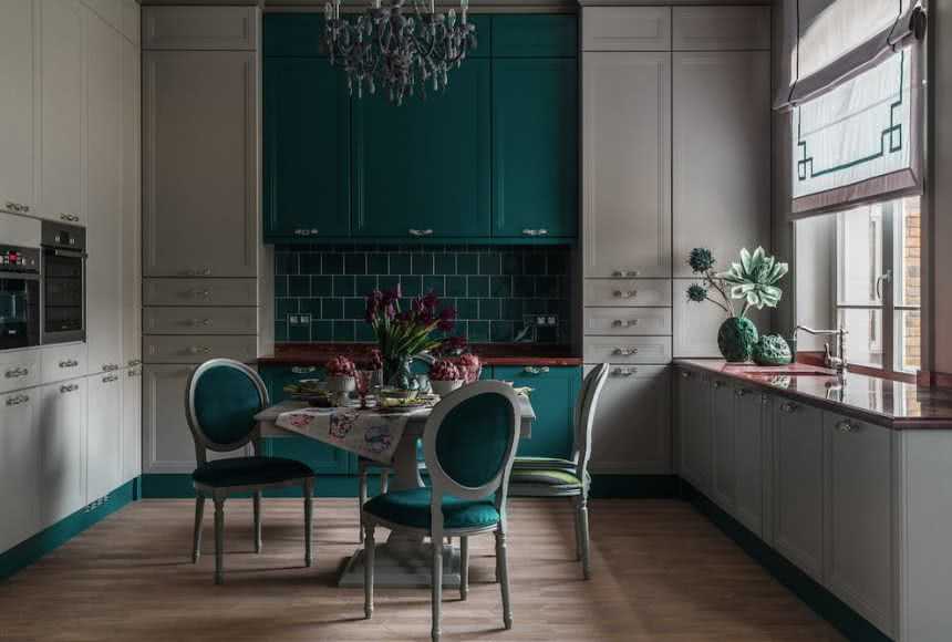 Оттеночные сочетания имеют множество нюансов из-за существования тонов и полутонов. Излюбленные оттенки зеленого: изумрудный, салатовый, фисташковый и лаймовый. Они создают необычный и красочный интерьер и даже повышают аппетит.