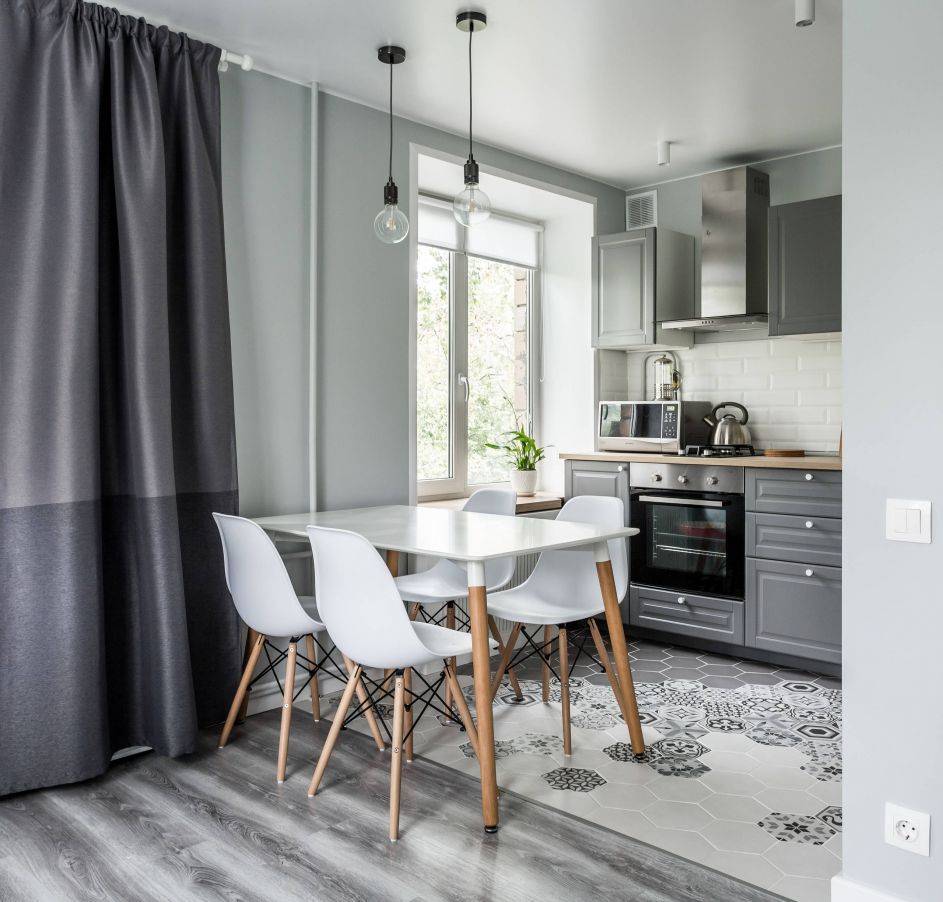 Ремонт лучше начинать с кухни. Она делится на две части – в одной готовят еду, а в другой обедают. Если имеются газовые плиты, площадь оптимизируется с помощью перегородок без удаления стен. Санузел стоит на прежнем месте. При желании можно объединить ванную с унитазом.