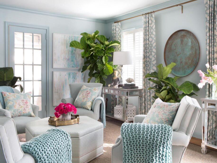 Голубой цвет в интерьере действует успокаивающе. Многие пришли к выводу, что это идеальный цвет для гостиной, который способствует релаксации. Лучше выбрать более спокойные, пастельные тона, напоминающие чистое небо, облака, морской бриз и прибрежные волны.