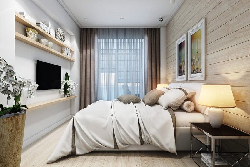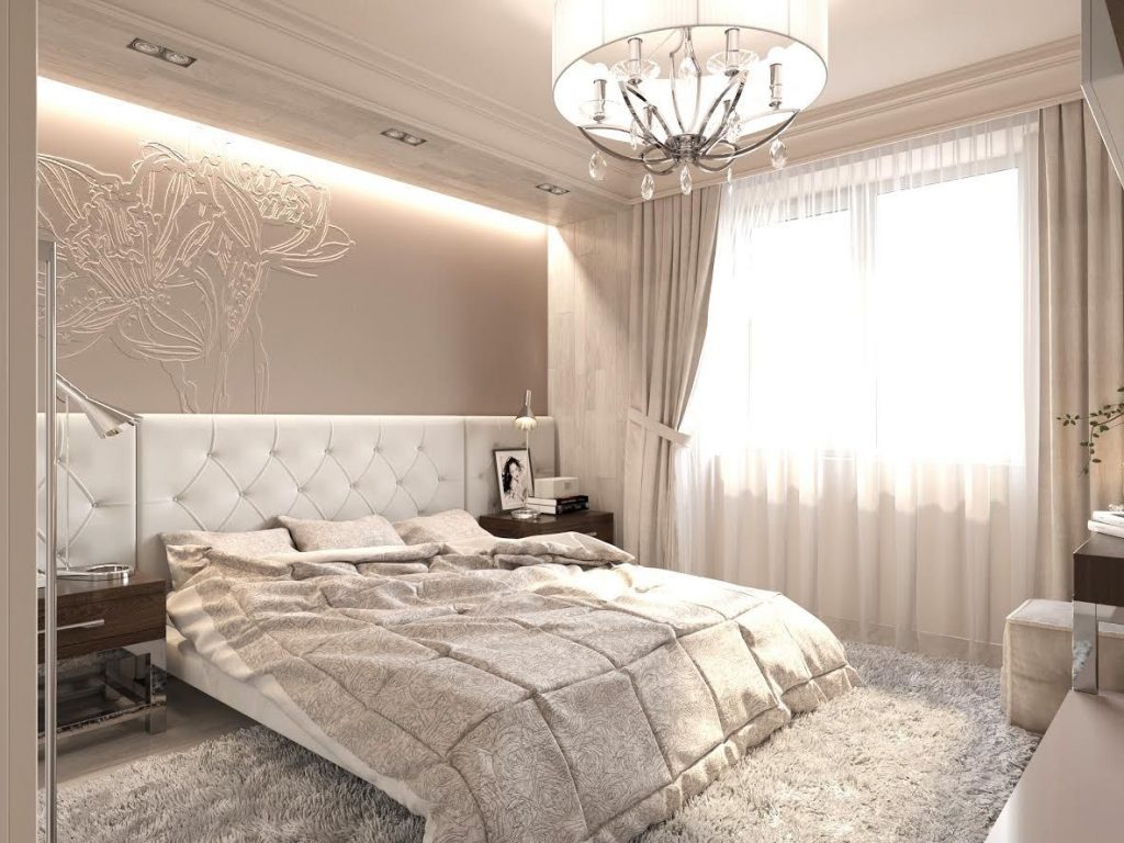 Для этого хорошо подойдет белый цвет, являющийся универсальным вариантом для большинства интерьеров спальни.