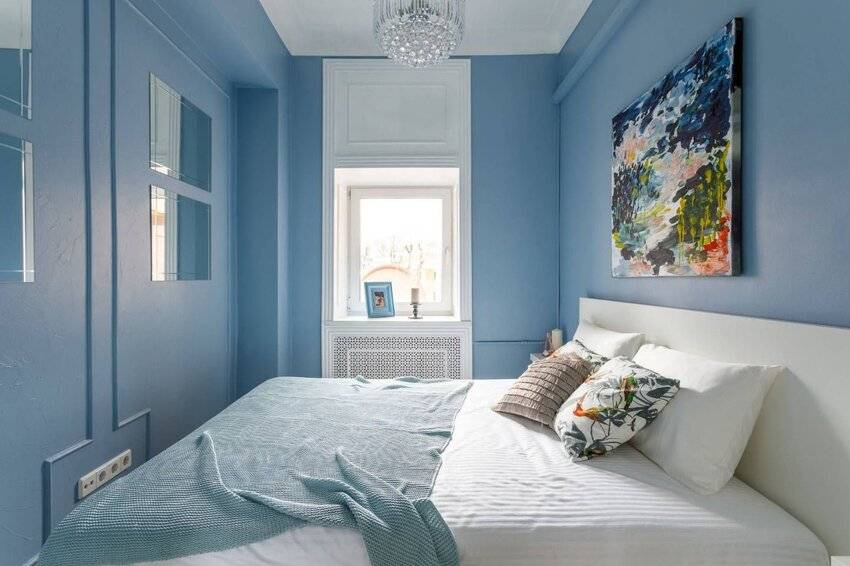 Основным цветовым решением для маленькой спальни должны быть спокойные тона без ярких оттенков. Не стоит выбирать слишком холодные или чрезмерно теплые оттенки, так как это создаст дополнительную визуальную нагрузку на интерьер.